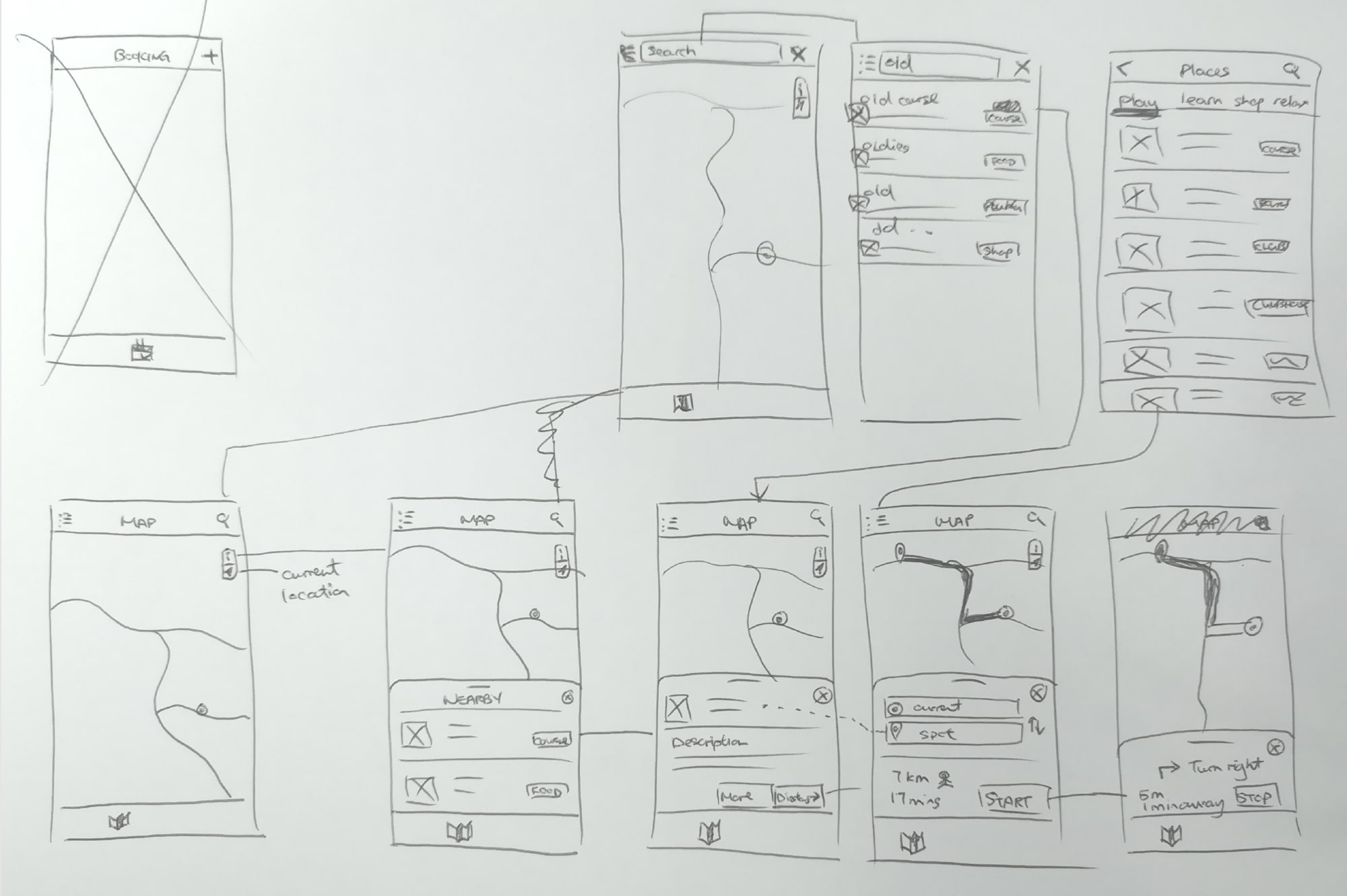 Before I started wireframing in Sketch, I did some rough sketches with paper and pen. This helped me think through some of the details.